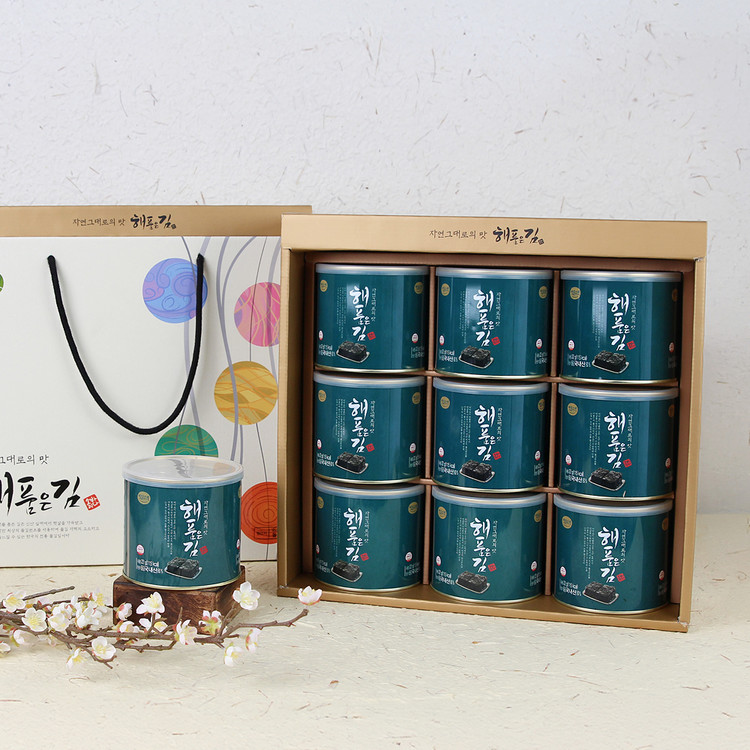 [MD Pick] 올리브유와 참기름으로 구운 곱창돌김 해품은김 9캔 선물세트
