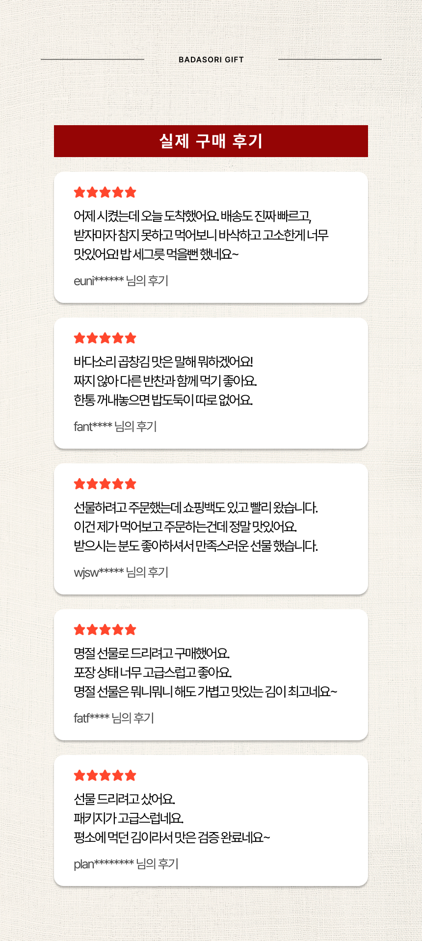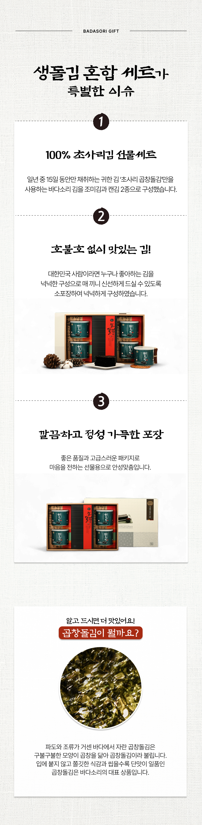 올리브유로 구운 곱창돌김 해품은김과 장에 찍어먹는 생돌김 혼합 5호 선물세트