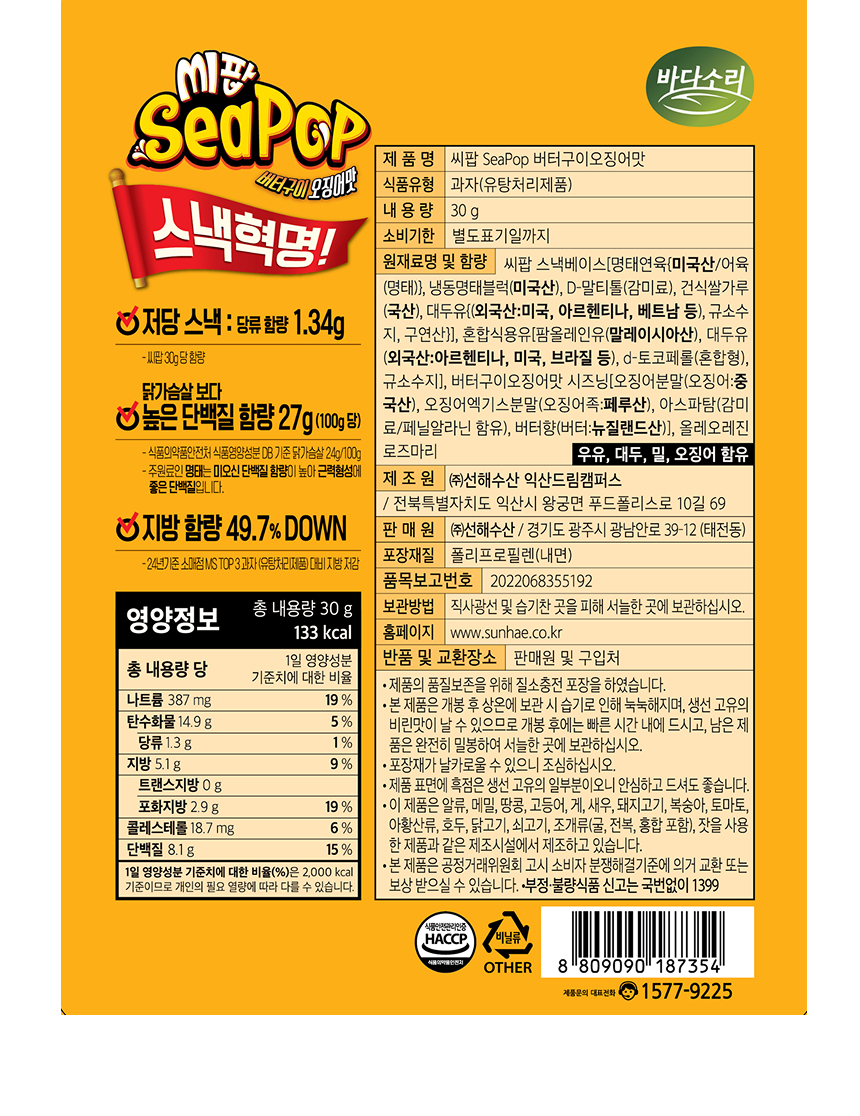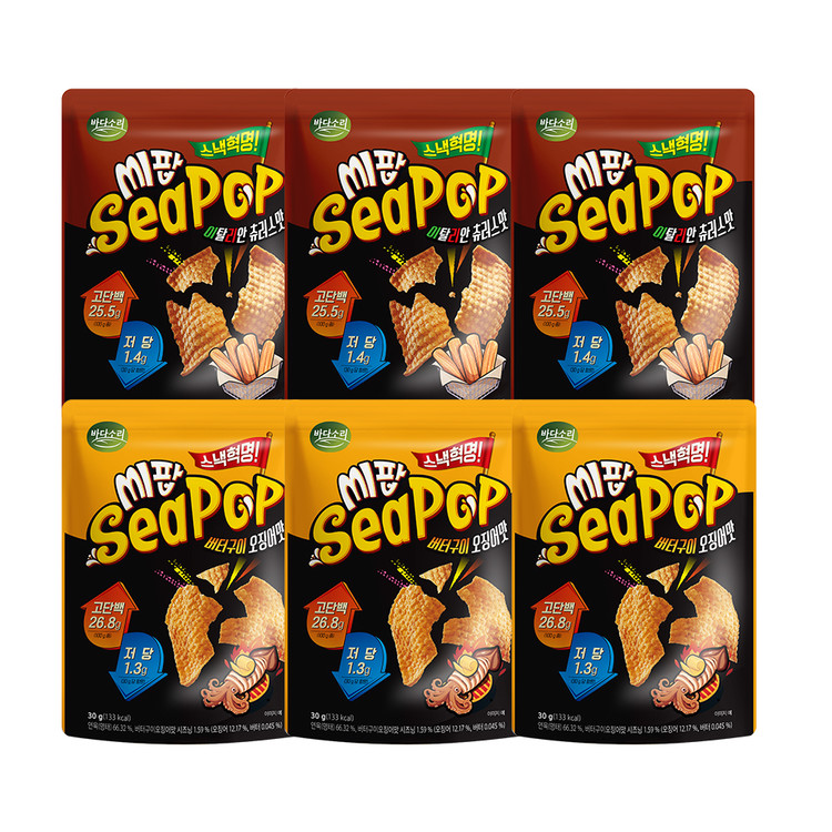 씹히는 리얼 단백질 씨팝 30g 6봉 (버터구이오징어, 츄러스)