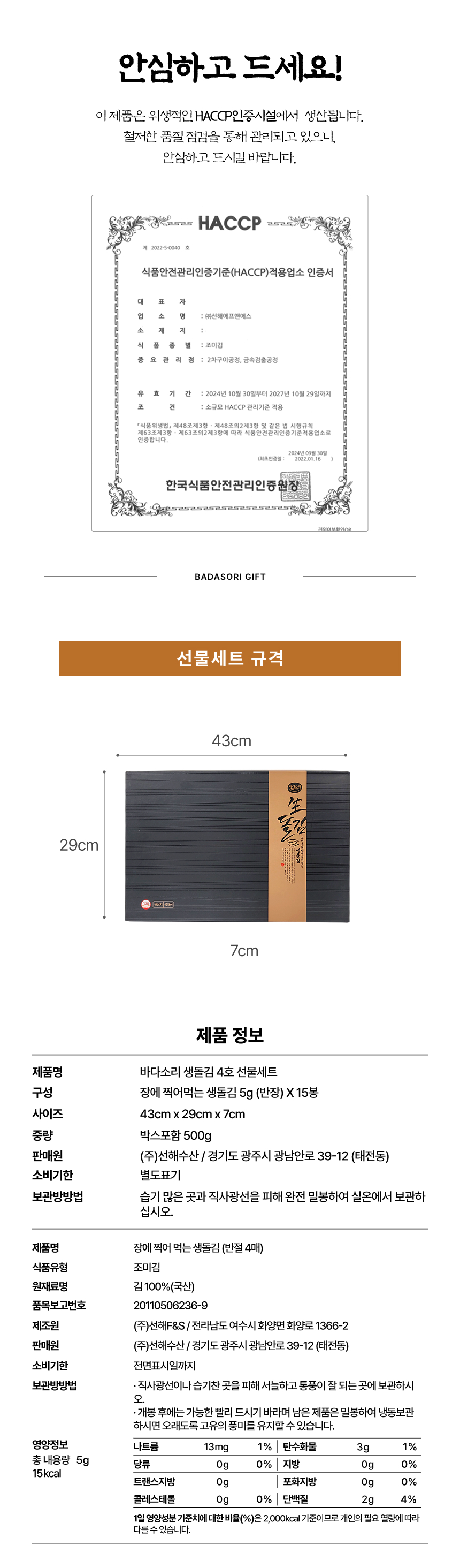 생돌김 4호 장에 찍어먹는 생돌김 무가미 옛맛 김 선물세트 x 10세트