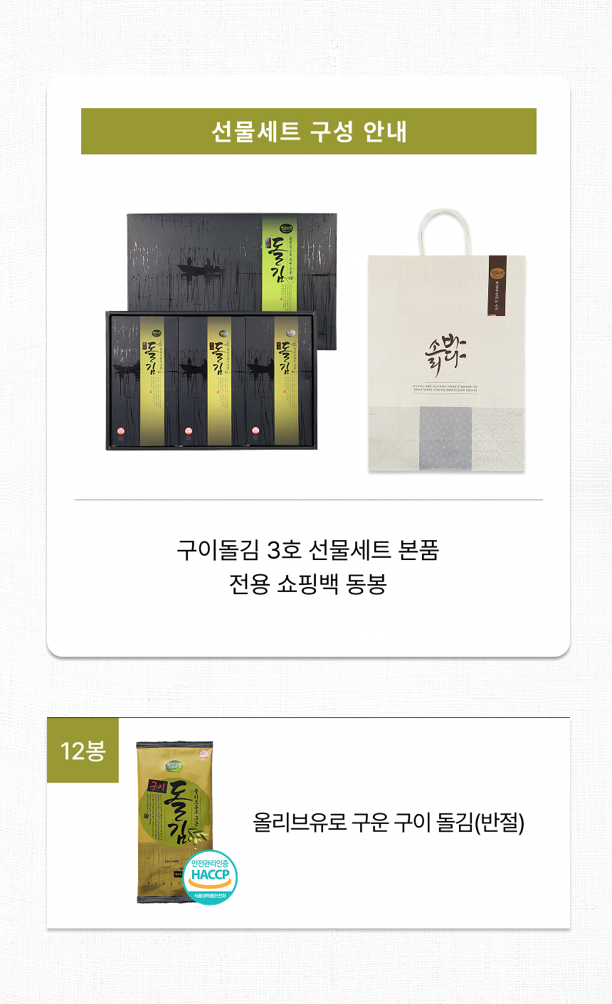 구이돌김 3호 올리브유로 구운 안짠 곱창돌김 선물세트 x 10세트