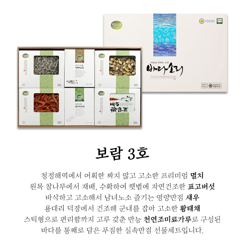 보람3호 건어물 명절 선물세트 (황태채/꽃새우/황태가루/다시마가루/멸치/표고) x 5세트