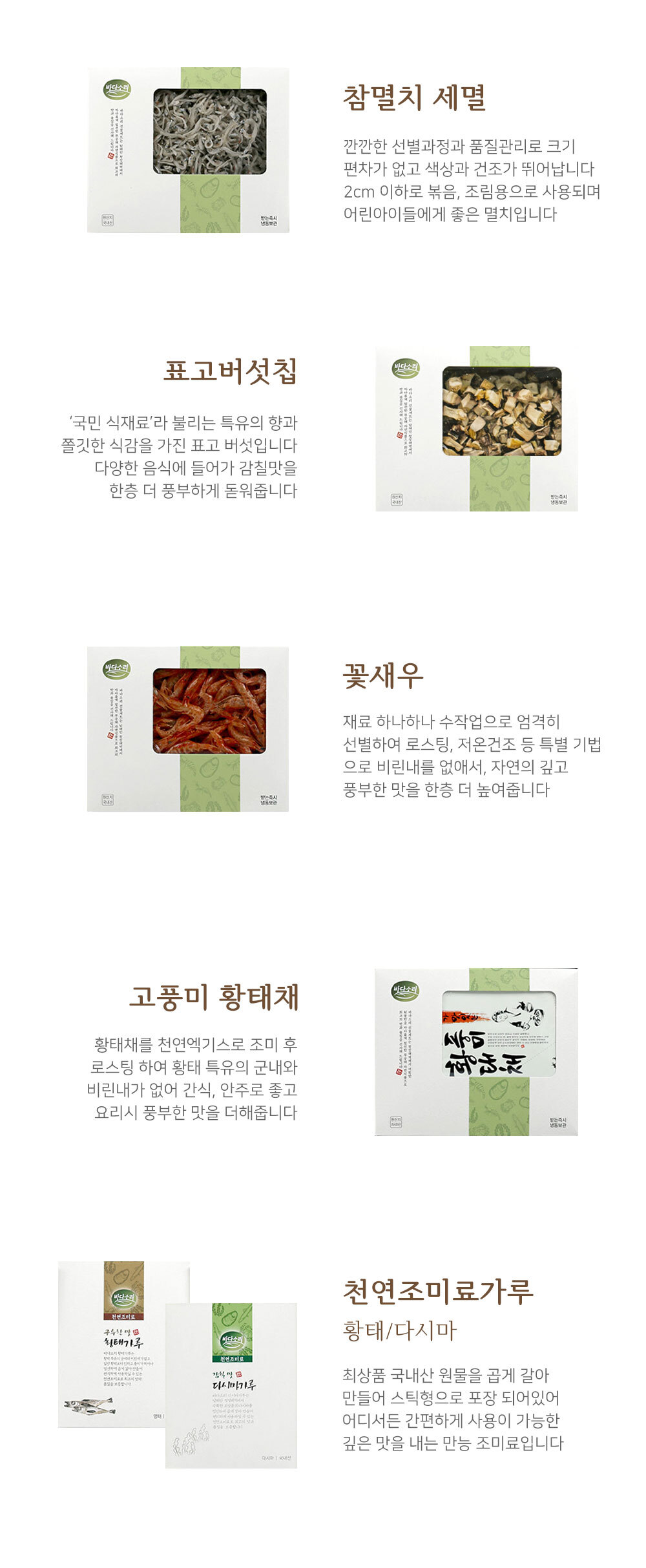세멸+표고칩+꽃새우+고풍미 황태채+황태 가루+다시마 가루