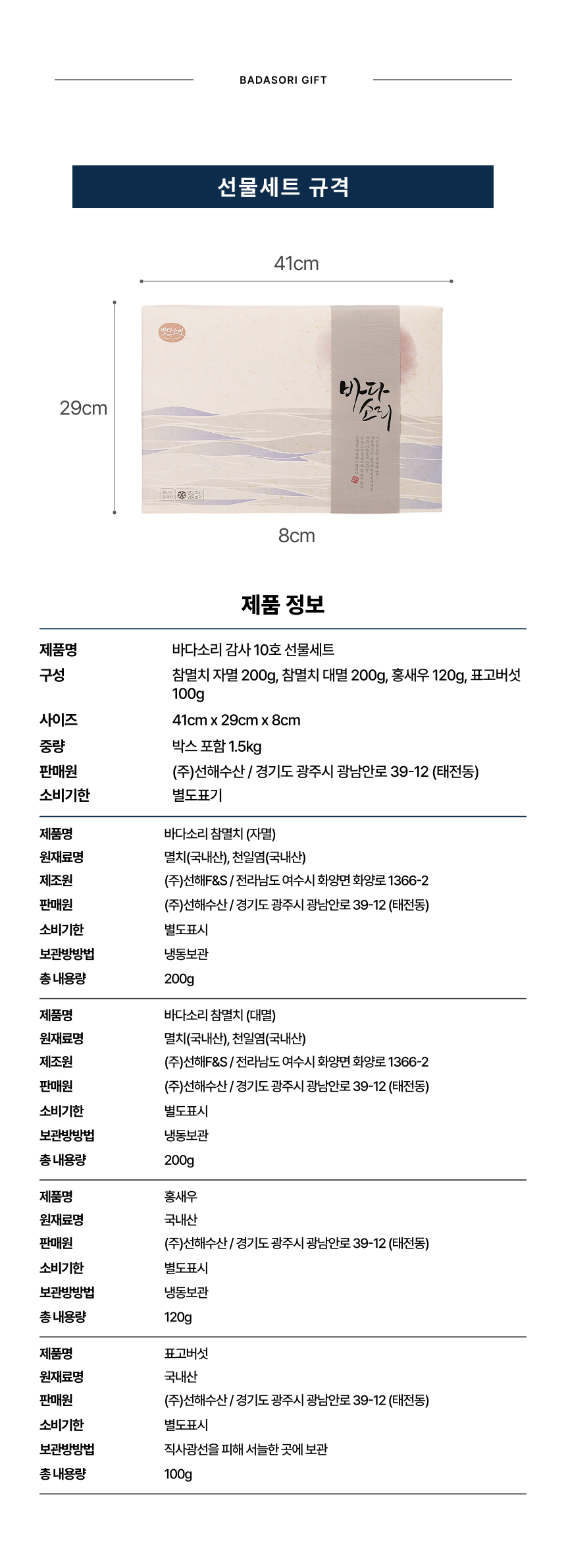 감사10호 남해안 멸치 표고 꽃새우 선물세트 x 5세트