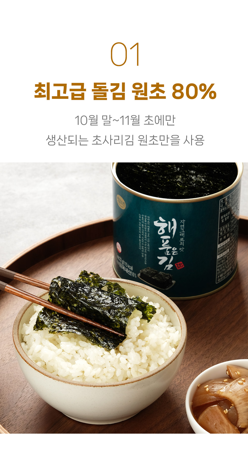 100% 초사리김으로 만든 미식가의 김 "생돌김"