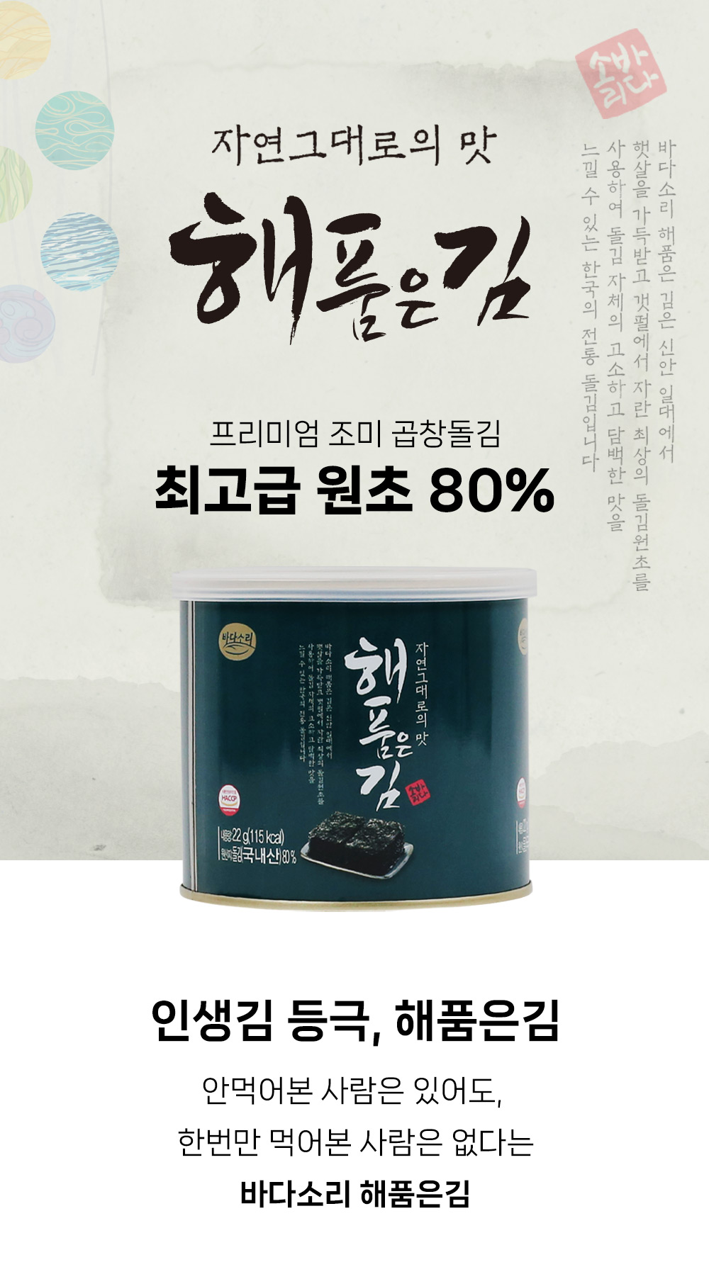 바다소리 생돌김은 최상급 원초라 다릅니다!