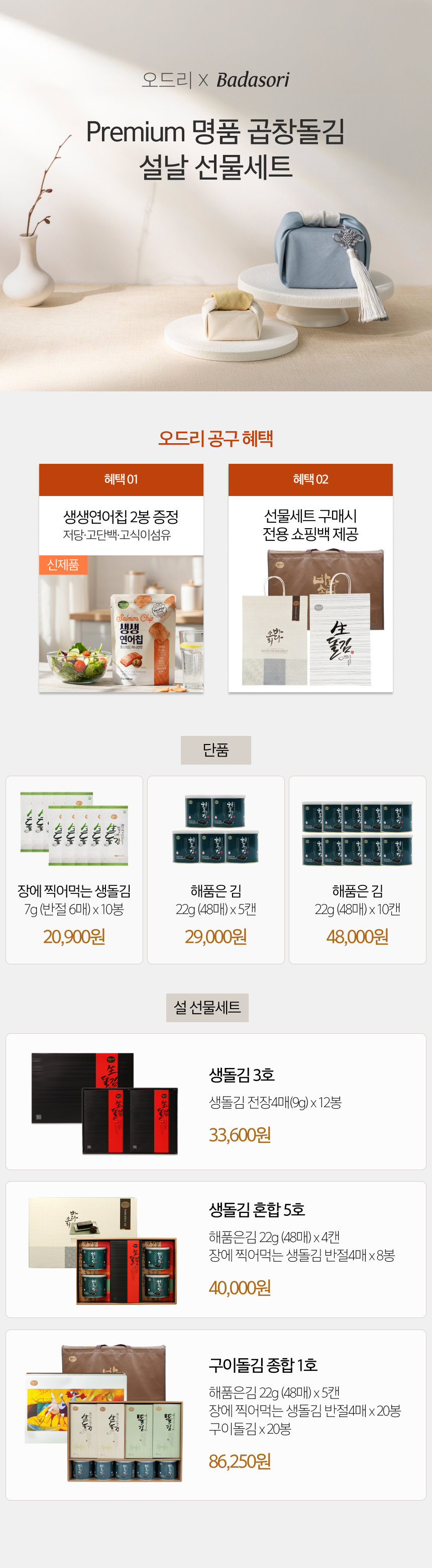 [오드리 공구]바다소리 명품 곱창돌김 설날 선물세트SALEBESTMD