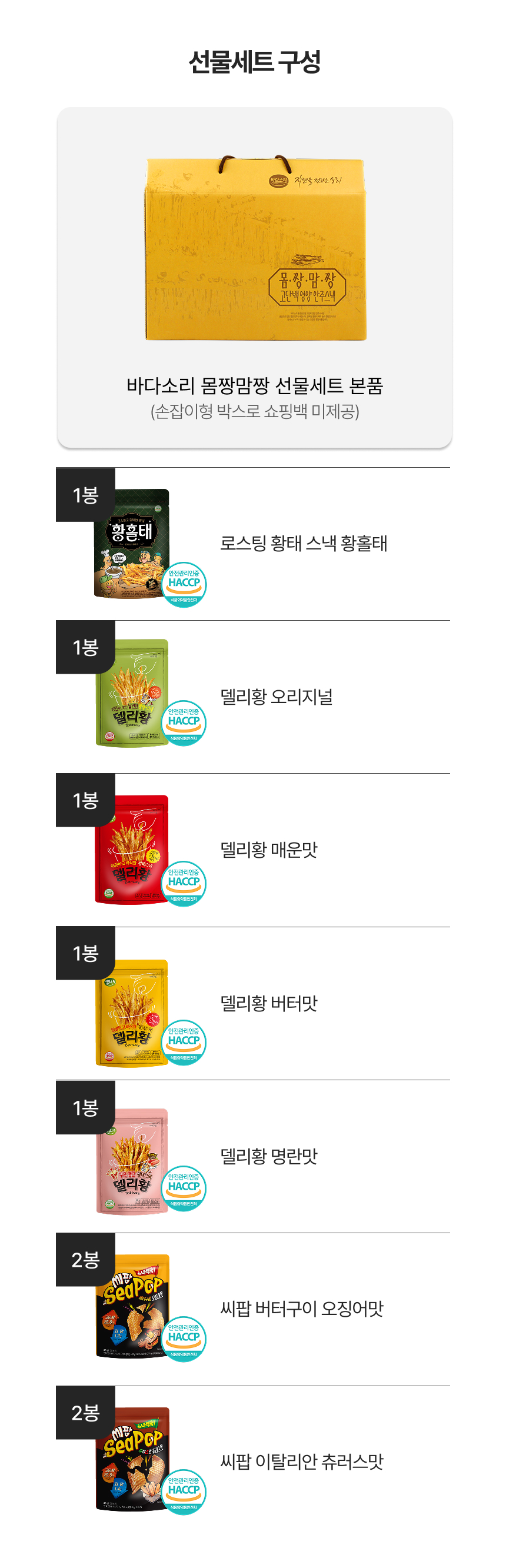 델리황(오리지널/버터/매운맛/명란구이)+뉴피쉬팝(오리지널/허니버터/칠리)+황홀태