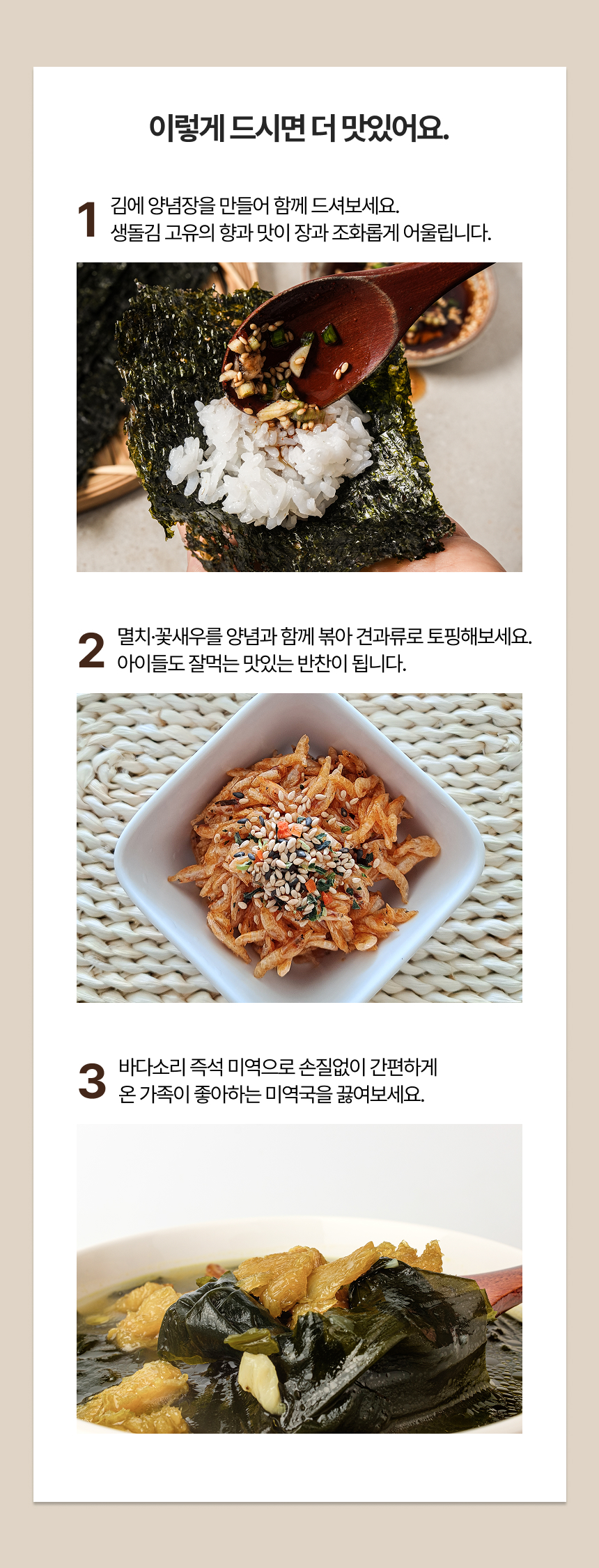 곱창생돌김(반절6매)*4봉+참멸치 세멸 200g+꽃새우 85g+즉석요리 미역80g