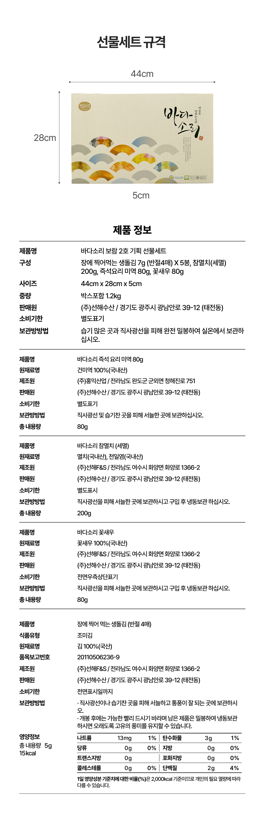 보람 2호 곱창돌김 남해멸치 꽃새우 미역 선물세트