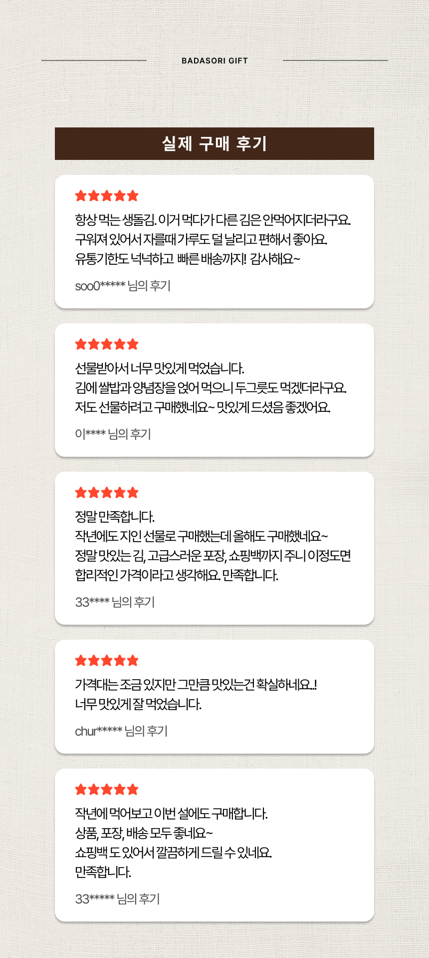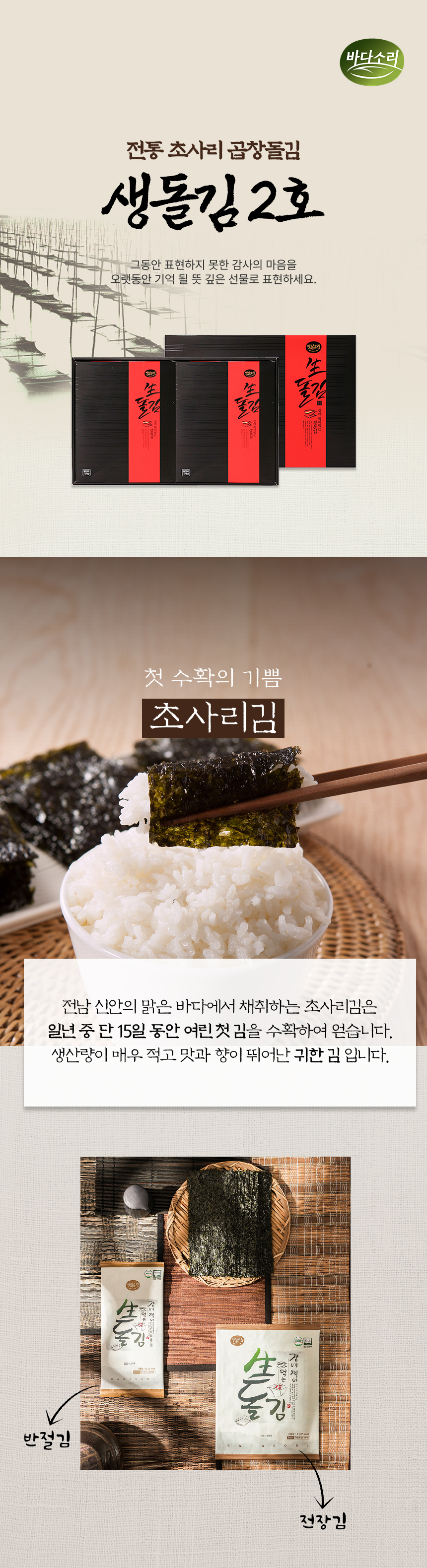 두번 구운 무조미 초사리 곱창김돌김