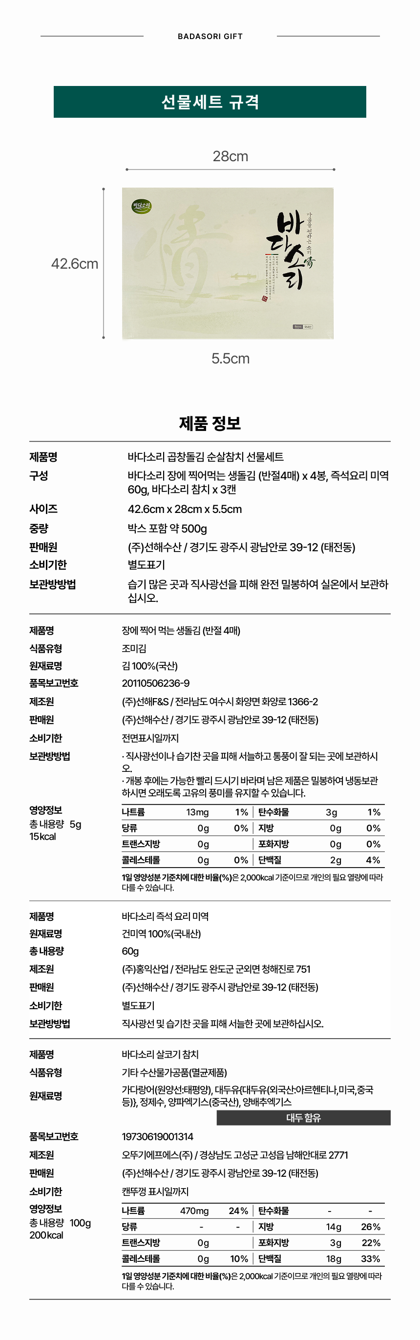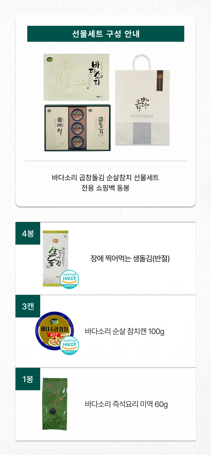 [MD Pick] 참드림 곱창돌김 순살참치 선물세트