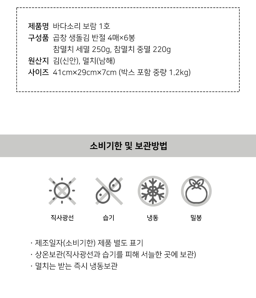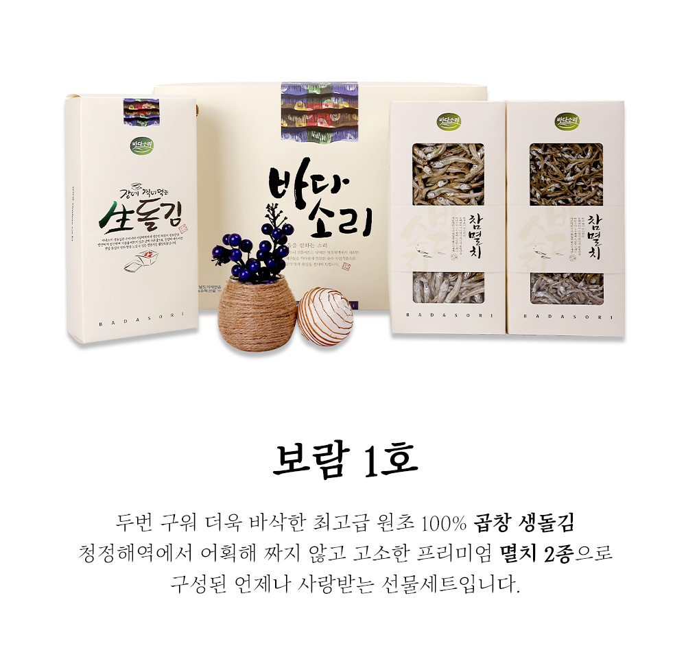 [MD Pick] 보람1호 남해안 멸치 세멸 곱창돌김 선물세트